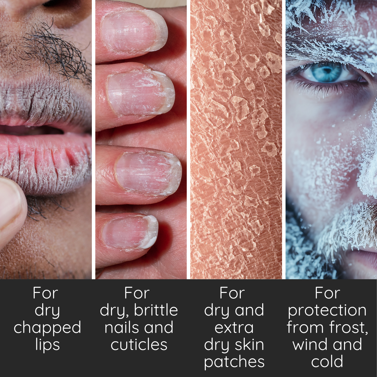 - Full-Body Balm: Apply a small amount to clean skin after a shower to protect skin from over-drying and flaking.